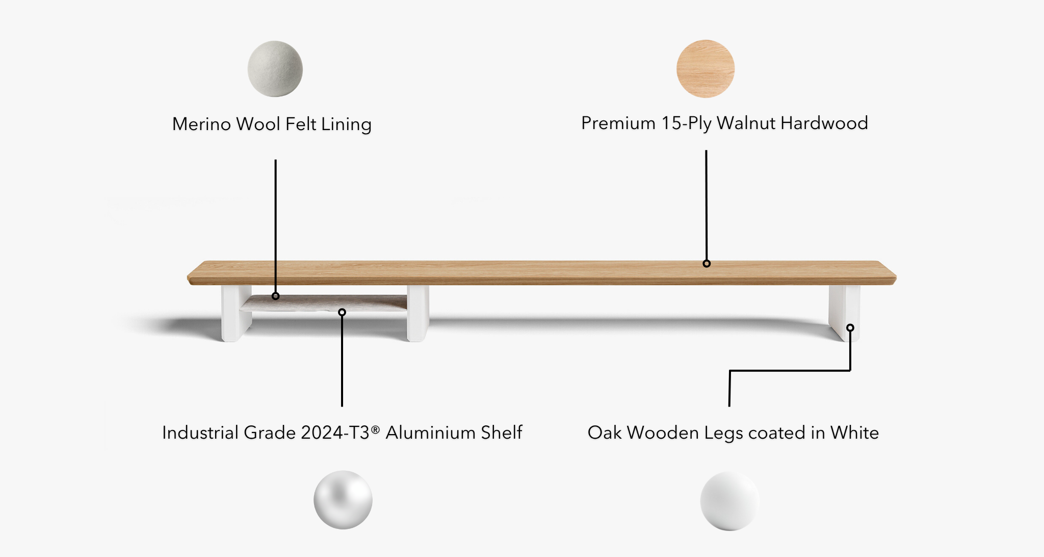 You've probably noticed that we have a carefully curated selection of raw materials. We believe these are the best materials out there for everyday use. Walnut and oak have a naturally beautiful grain and both of them have proven to be strong and durable hardwoods, ensuring that our pieces will last a long time.