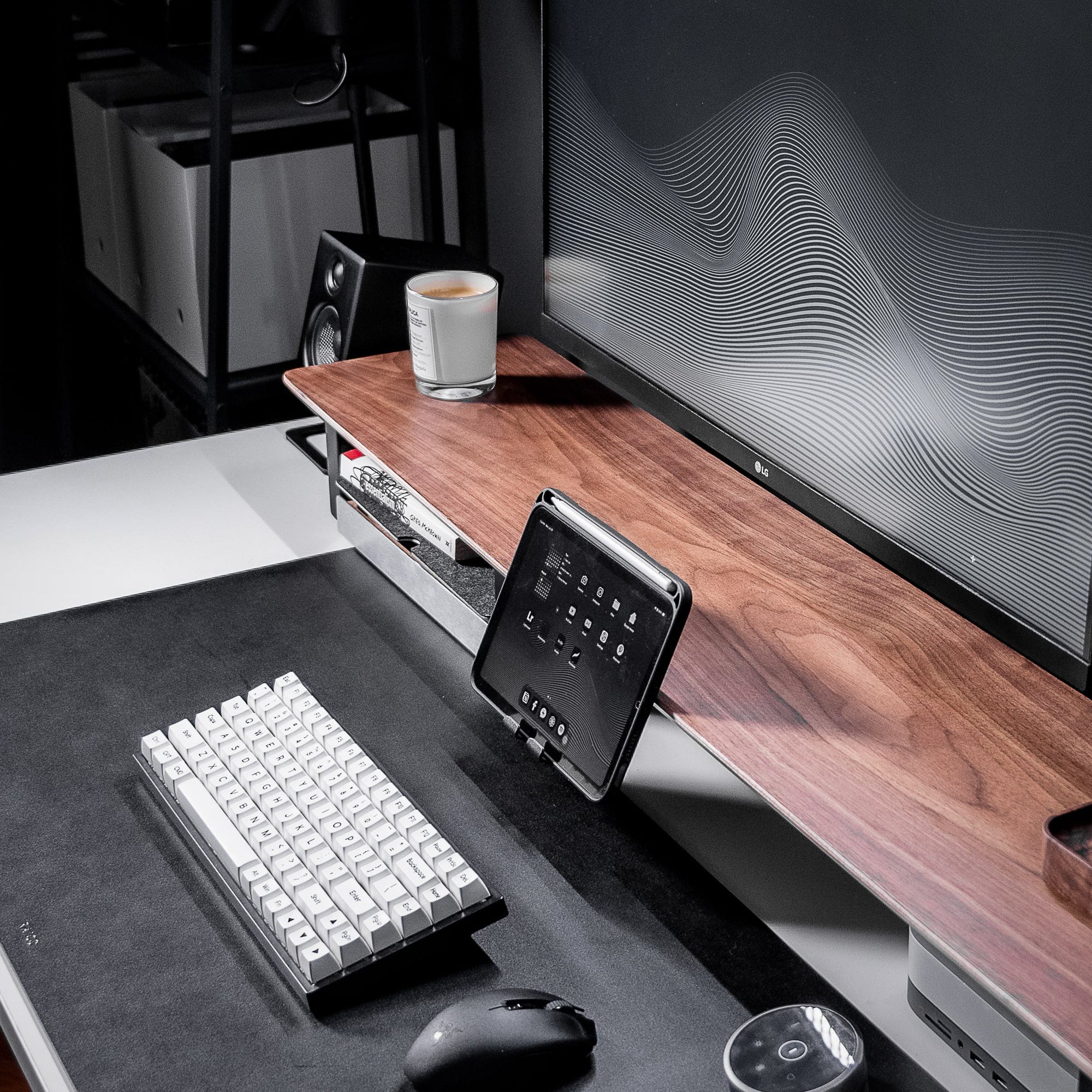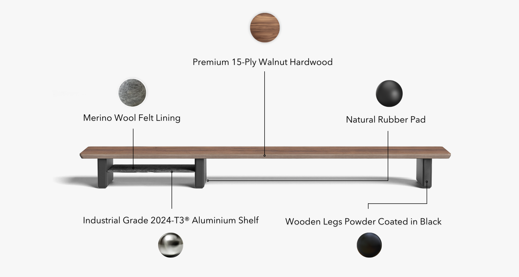 Each piece is available individually, giving you the flexibility to dial in your workspace by mixing and matching. The desk shelf cockpit coordinates seamlessly with our desk tray, laptop stand, and desk pad, for the ultimate desk setup system. Available in premium 15-ply walnut hardwood, as well as black or white finishes.
