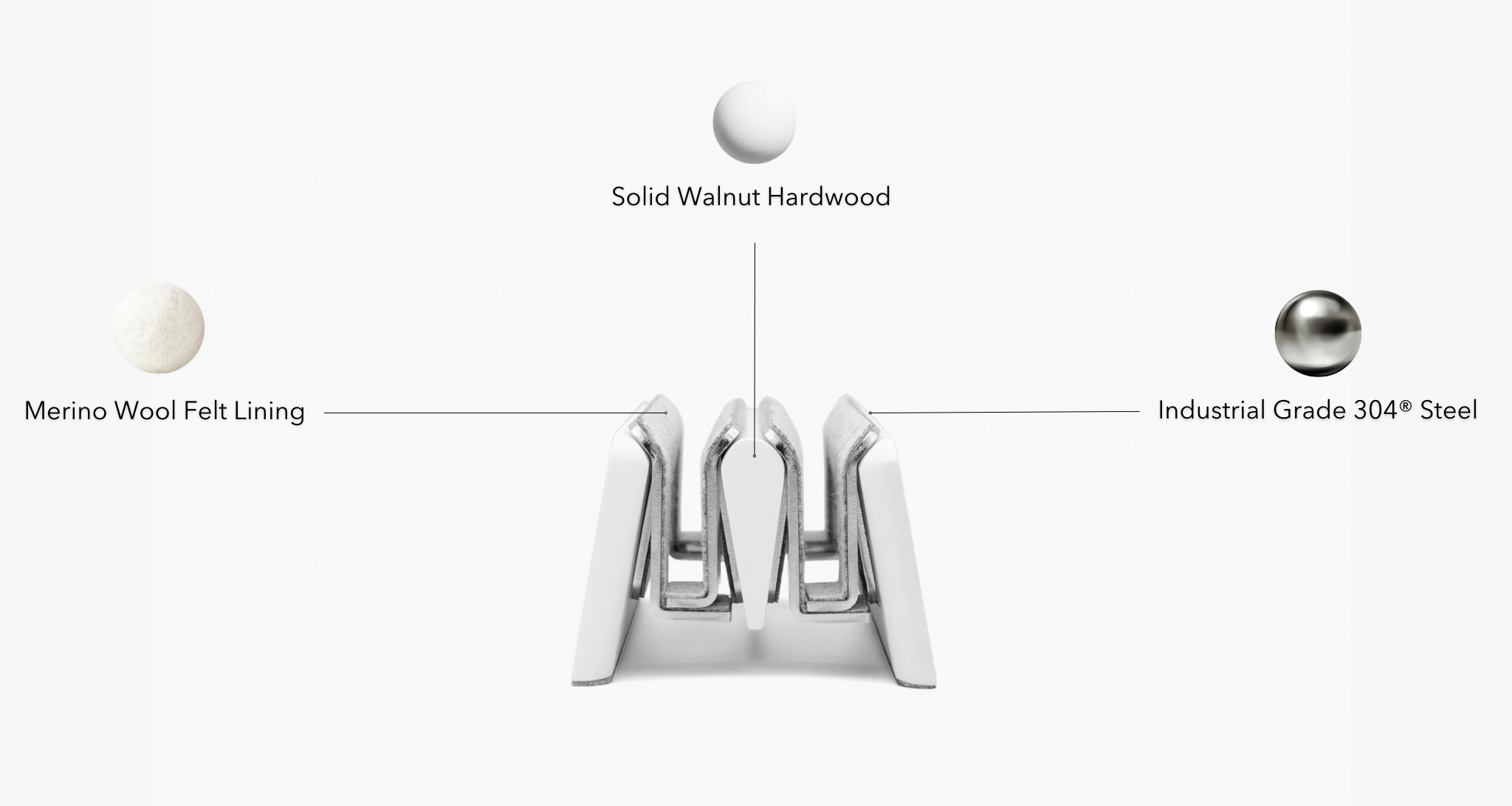 You've probably noticed that we have a carefully curated selection of raw materials. We believe these are the best materials out there for everyday use. Walnut and oak have a naturally beautiful grain and both of them have proven to be strong and durable hardwoods, ensuring that our pieces will last a long time.
